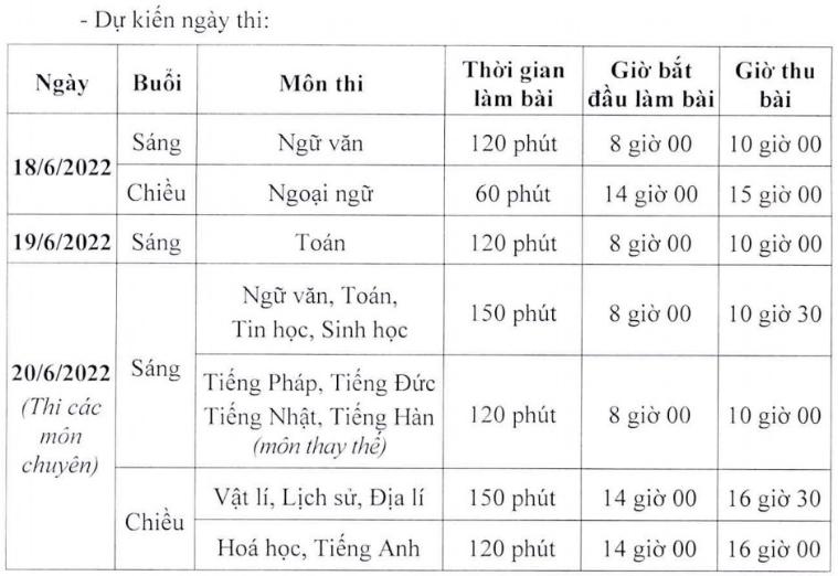 Theo dự kiến, thời gian tổ chức kỳ thi lớp 10 Hà Nội trong hai ngày 18 và 19/6/2022.