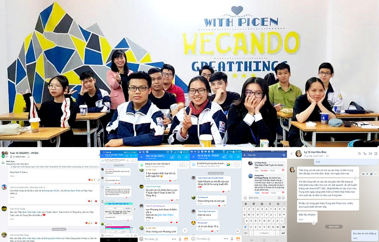 - Phụ huynh học sinh & Trung tâm có sự liên lạc dễ dàng, thường xuyên qua nhóm lớp: điểm danh, báo cáo buổi học, kết quả kiểm tra, thông báo chung, tư vấn lộ trình cá nhân hoá, tư vấn chọn lớp, trường, ngành nghề phù hợp với học sinh